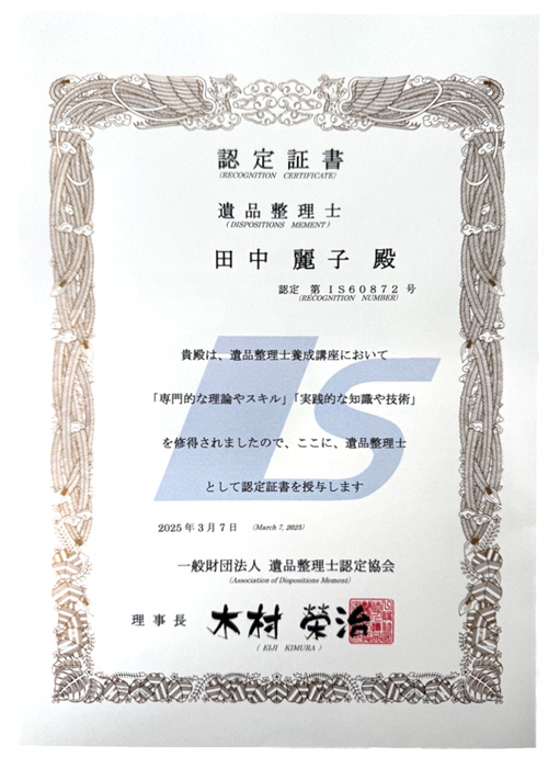 遺品整理士がご遺族様の気持ちに寄り添いながら、ご意向を丁寧に伺い、真心を込めて対応いたします。整理の際、買取可能な品物がございましたら、その場で査定・買取いたします。